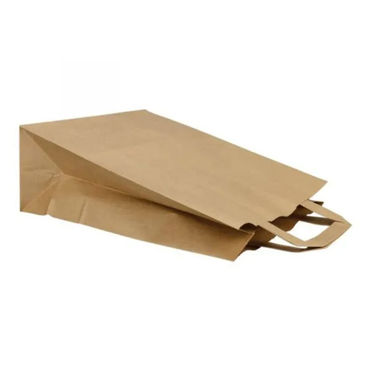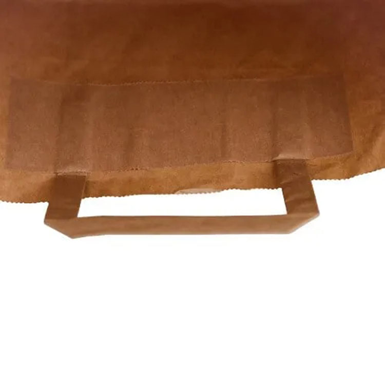 ఫ్లాట్ పేపర్ హ్యాండిల్స్తో కూడిన క్రాఫ్ట్ పేపర్ బ్యాగ్ను క్యాటరింగ్ పరిశ్రమలో, సూపర్ మార్కెట్లో మరియు బహుమతులుగా ఉపయోగించవచ్చు. అవి బలమైన మరియు మన్నికైన పదార్థాలతో తయారు చేయబడ్డాయి, వాటిని చాలాసార్లు తిరిగి ఉపయోగించవచ్చు, కంపోస్ట్ చేయదగినవి మరియు బయోడిగ్రేడబుల్.